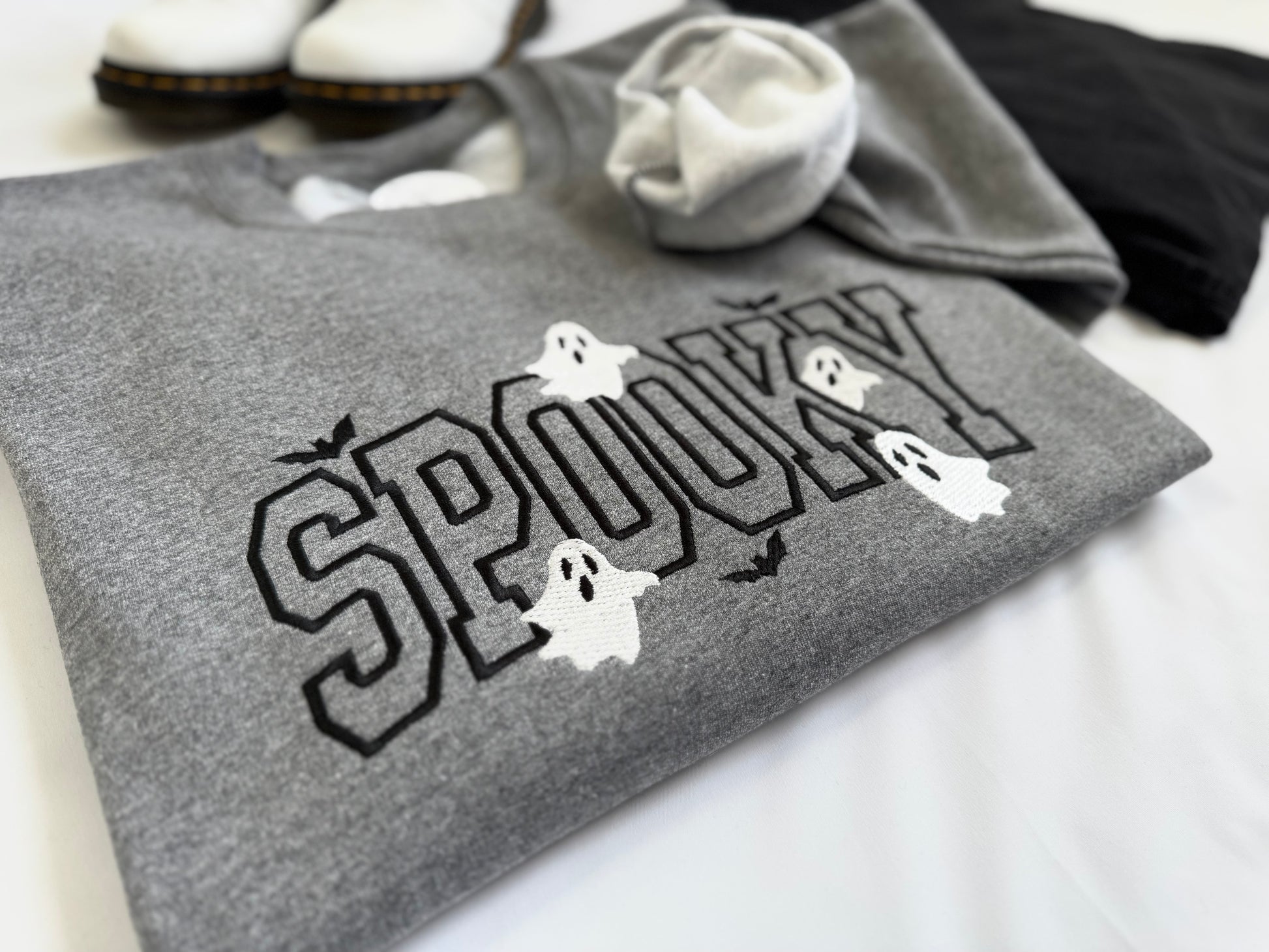 Your new go-to for spooky season has arrived! This “Spooky” crewneck features playful little ghosts and bats for the perfect mix of festive and comfy. Whether you’re hitting the pumpkin patch, passing out candy, or binge-watching Halloween classics, this sweatshirt will keep you warm and in the Halloween spirit.